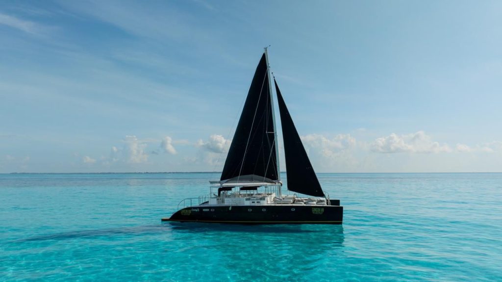 The Soprano 69ft catamaran is one of the largest and most impressive private catamarans operating in Cancun. With its wide decks and powerful sailing performance, this yacht offers both luxury and stability, making it ideal for large private groups.