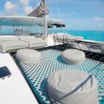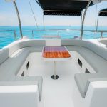The front nets, shaded lounge, and spacious seating areas allow guests to spread out and enjoy different atmospheres on one yacht. Some can relax under shade while others enjoy sun and ocean views.