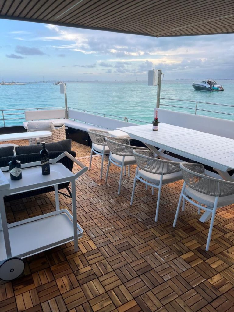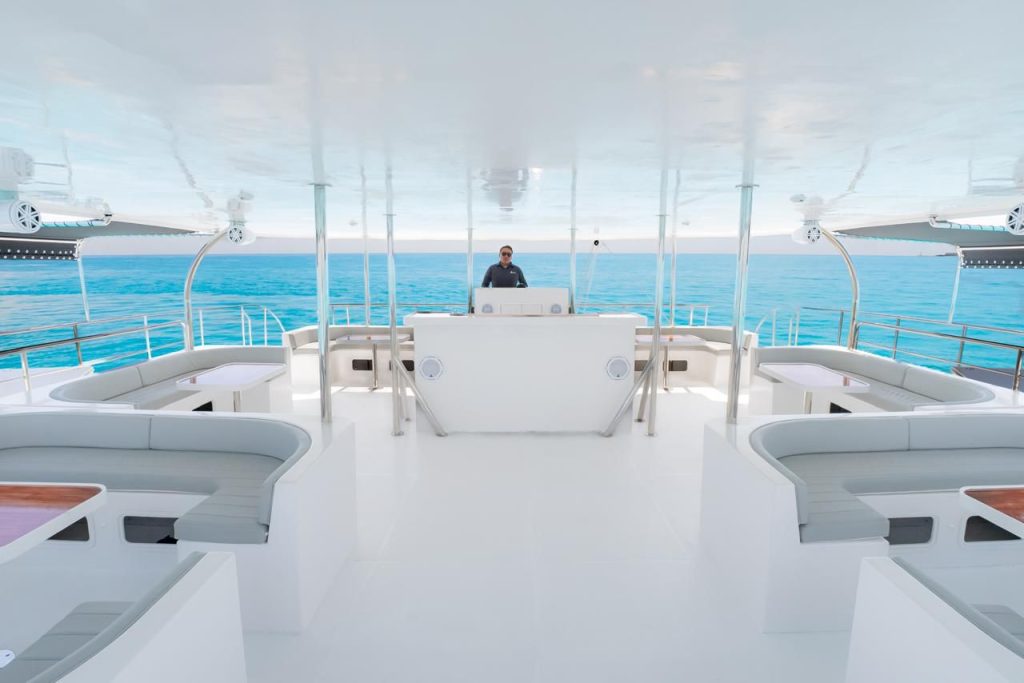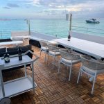 In addition, the flybridge level creates a premium VIP atmosphere where guests can enjoy panoramic ocean views while socializing and enjoying drinks.