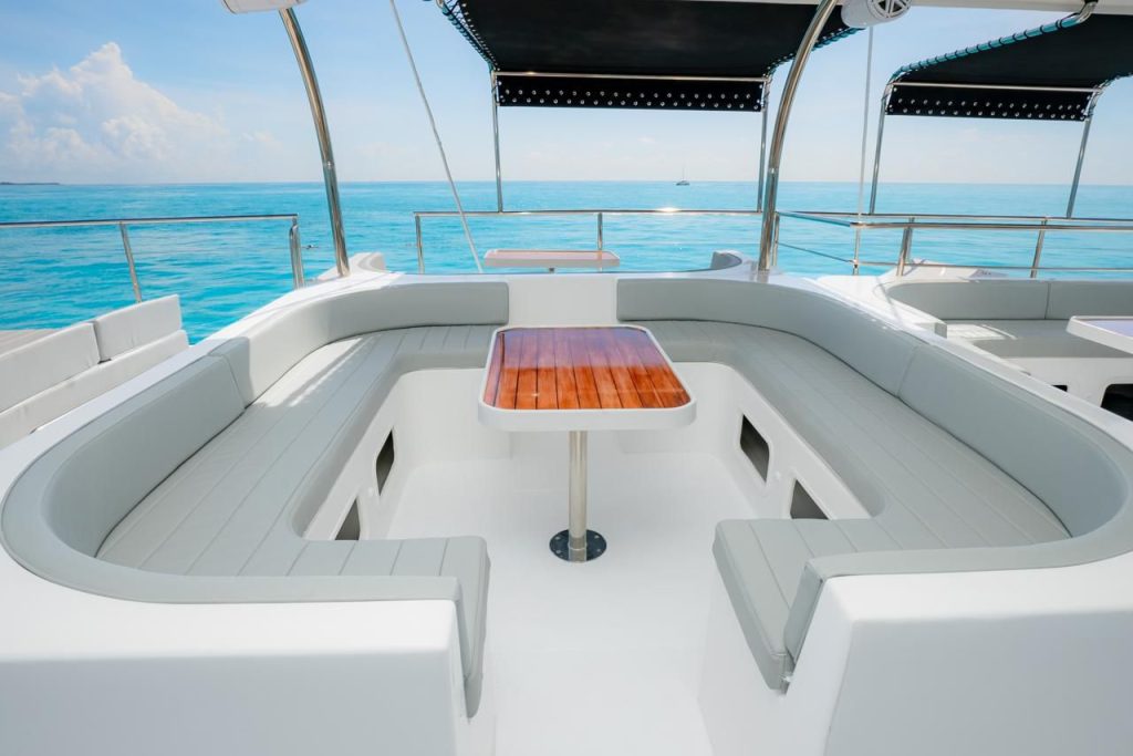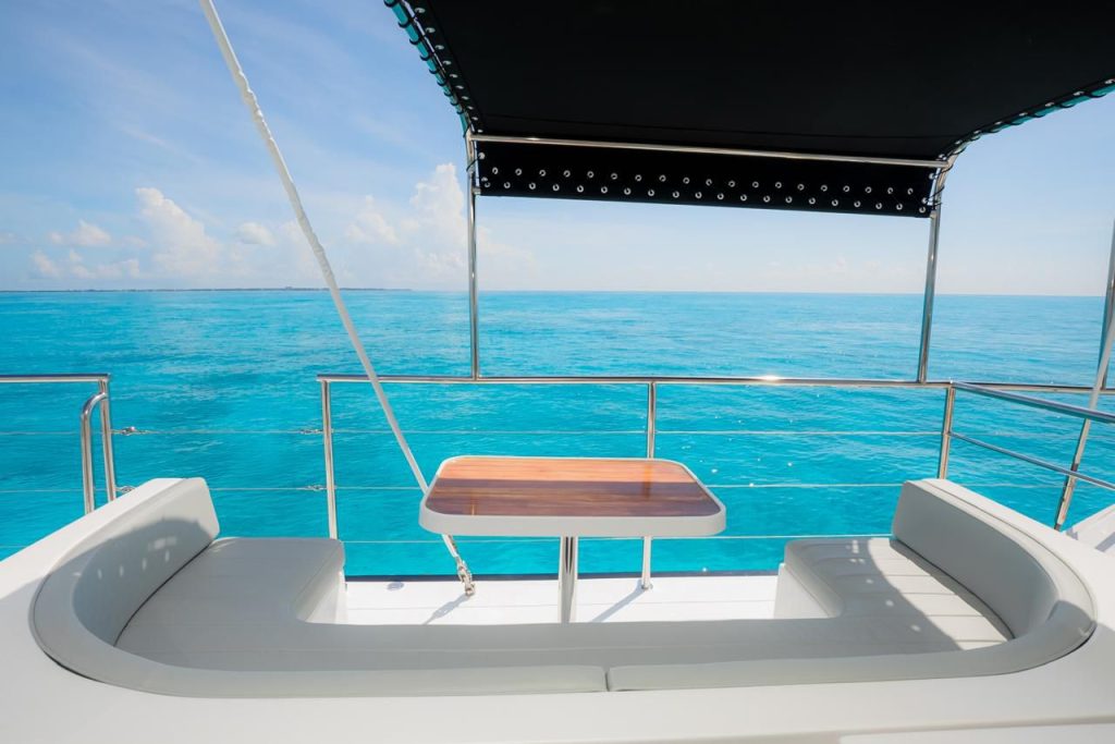 The Modesty 60ft flybridge catamaran stands as one of the most impressive large capacity vessels in Cancun. Not only does it offer exceptional space, but it also delivers a level of comfort and elegance that turns any event into a luxury experience on the Caribbean Sea.