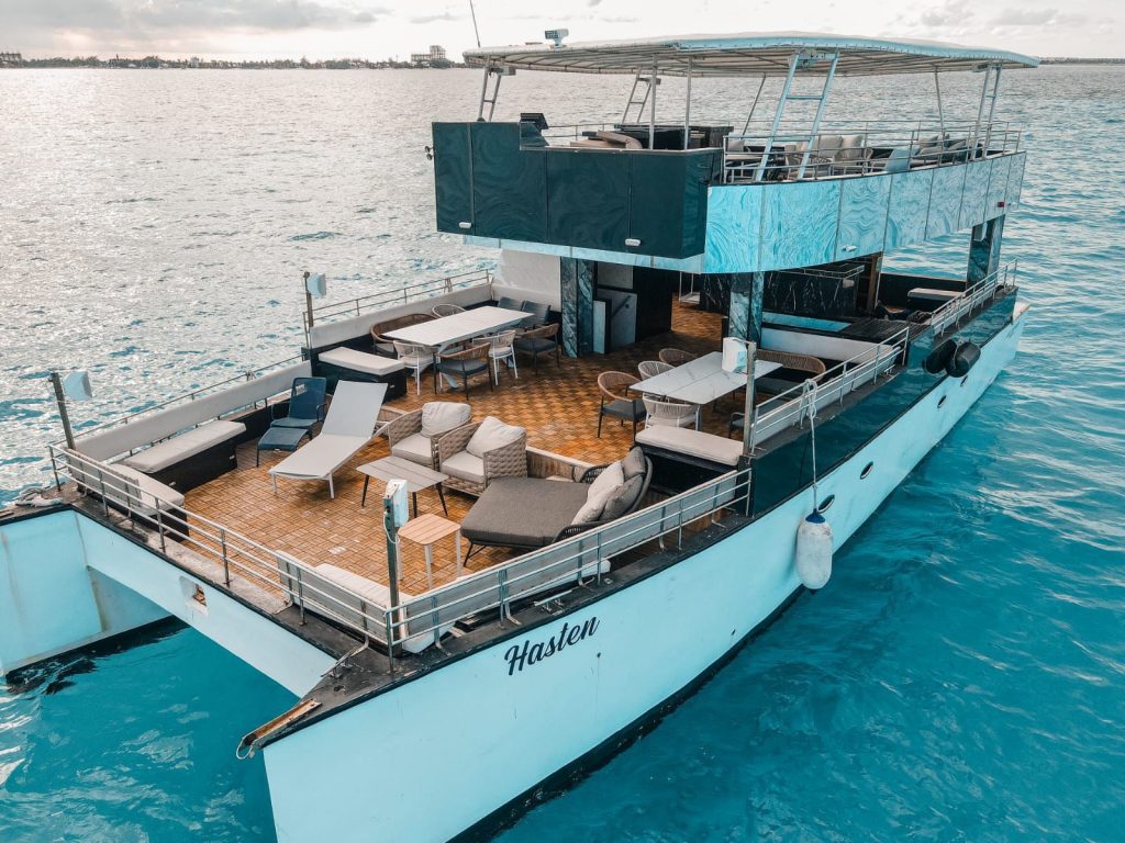 The Modesty 60ft catamaran in Cancun offers one of the most powerful and spacious private yacht experiences for large groups. Designed to host major events, this floating venue delivers elegance, stability, and comfort on the Caribbean Sea.